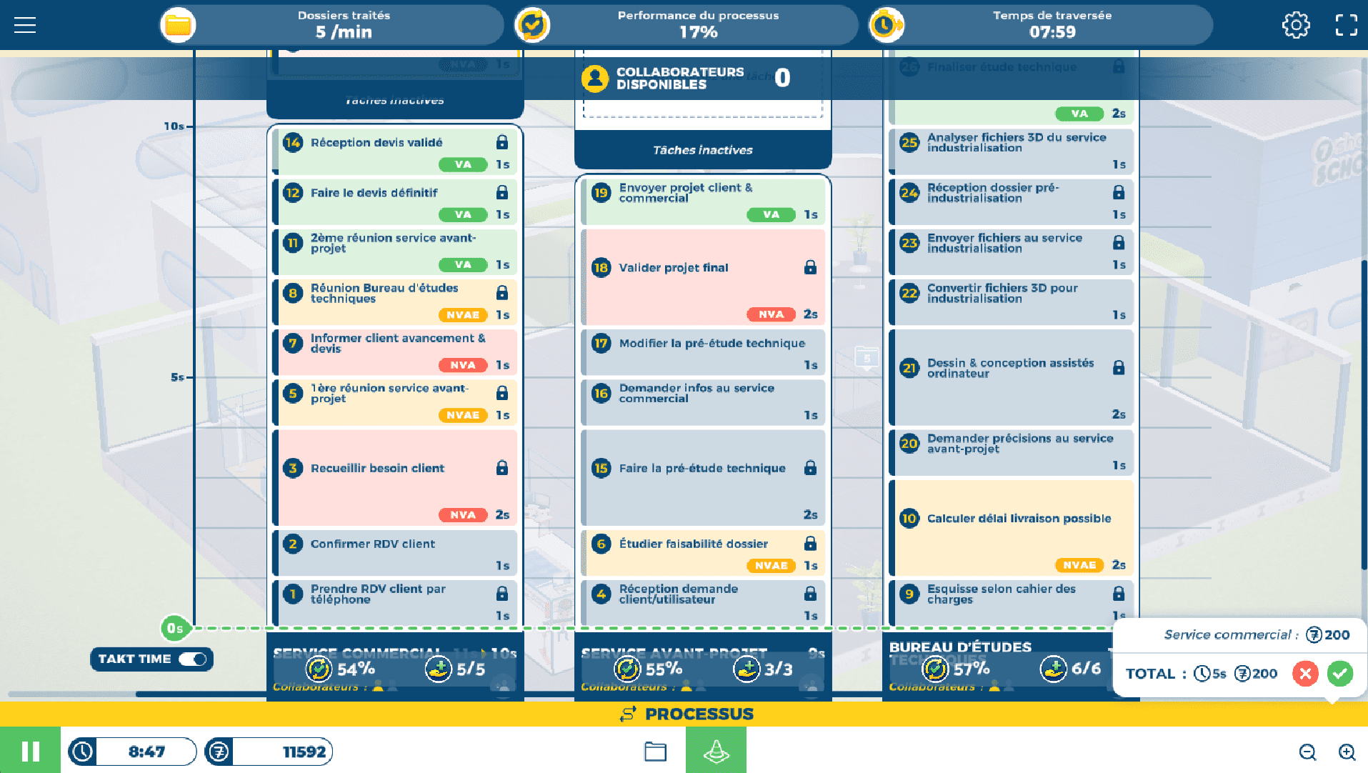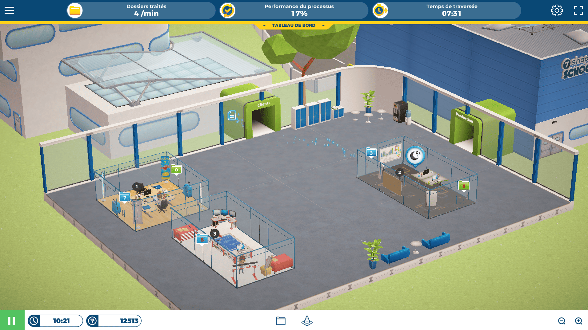 Simulation dans un environnement de bureaux pour se former au Lean Management Office.
